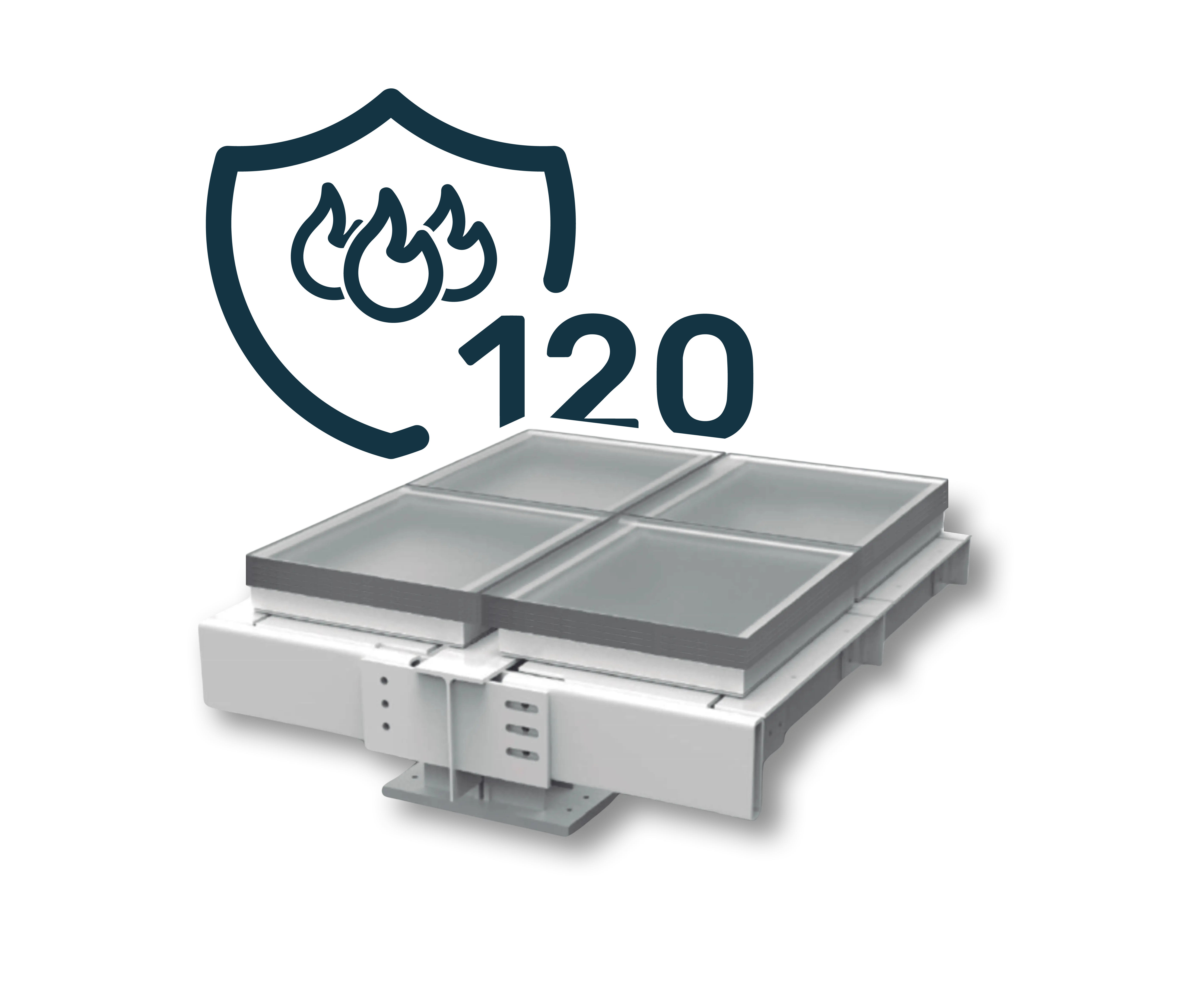 Provides protection for up to 120 minutes, blocking flame, smoke, radiant heat.